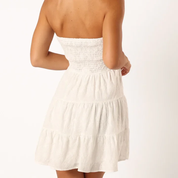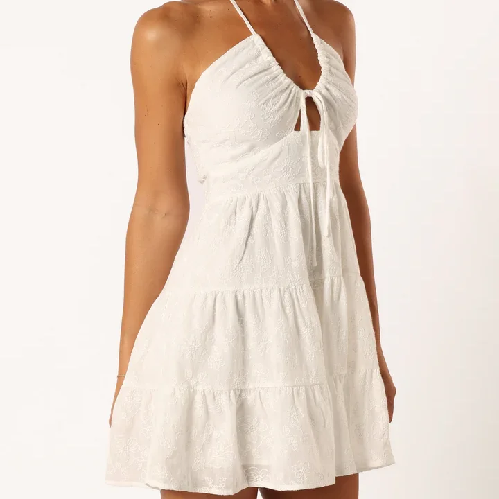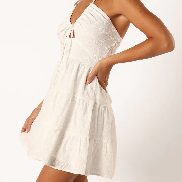 High Quality Summer A-Line Dress Sleeveless Camisole One Neck Backless Short Skirt High Waist Pleated Eco-Friendly Woven Fabric